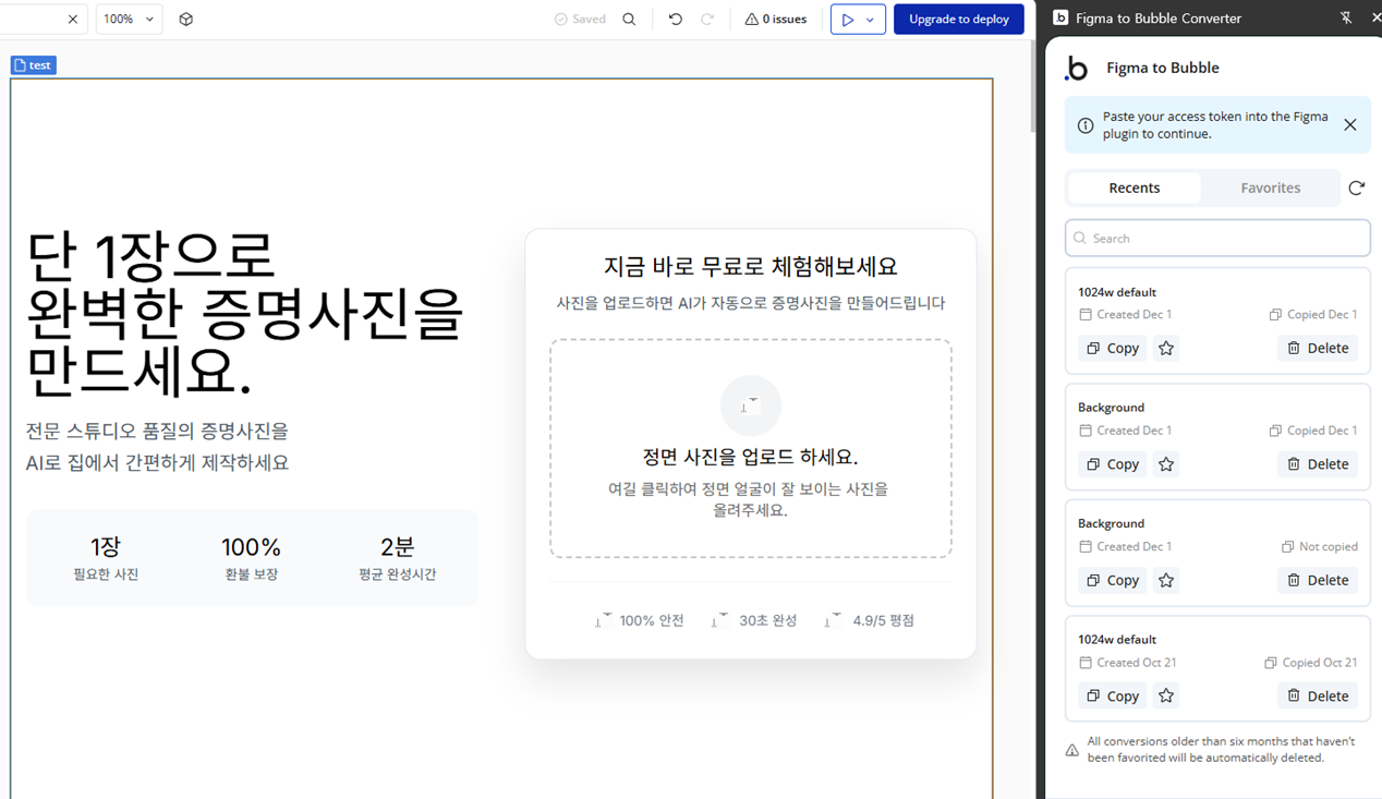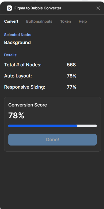 AI가 만든 HTML/CSS 코드를 Bubble 디자인으로 자동 변환해주는 플러그인입니다.